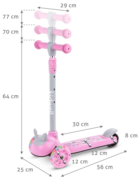 • 3 stopniowa regulacja kierownicy od 64 do 77 cm.