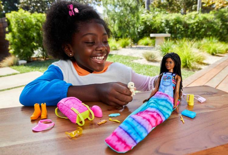 Dołącz do Barbie® Malibu i Brooklyn w ich największej przygodzie dzięki lalkom Barbie® inspirowanym serialem Barbie „It Takes Two My Dwie”! Zabierz lalkę Barbie® Malibu na niesamowitą wyprawę kempingową ze szczeniaczkiem i ponad 10 akcesoriami biwakowymi, które inspirują do wymyślania różnorodnych opowieści. Chcesz odkrywać leśne ostępy? Przypnij śpiwór Barbie® i zapakuj do plecaka niezbędne akcesoria do pieszych wędrówek, takie jak latarenka, mapa, lornetka, „smartfon” i nie tylko.