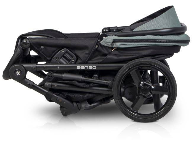 Wózek Senso wyróżnia się z oferty wózków RIKO bardziej kompaktowymi rozmiarami i innowacyjną składaną na płasko gondolą. Dzięki zastosowaniu nieco mniejszych kół przednich, wózek Senso składa się do mniejszych rozmiarów niż inne model wózków Riko oraz jest bardzo dobrze wyważony (przednia oś jest idealnie dociążona, co ułatwia skręcanie).