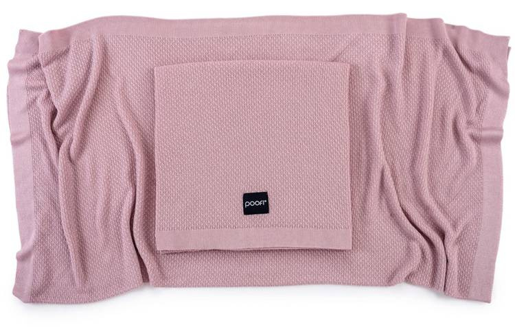 Kocyki Poofi mają małą, subtelną i elegancką metkę żakardową, która nadaje naszym kocykom stylu.