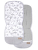 Dzięki łatwemu montażowi za pomocą gumki sami możemy wybrać, która ze stron odpowiada potrzebą dziecka. Wkładka pasuje do większości wózków spacerowych dzięki wycięciom na 3 i 5 punktowe pasy. Posiada uniwersalny kształt i rozmiar.