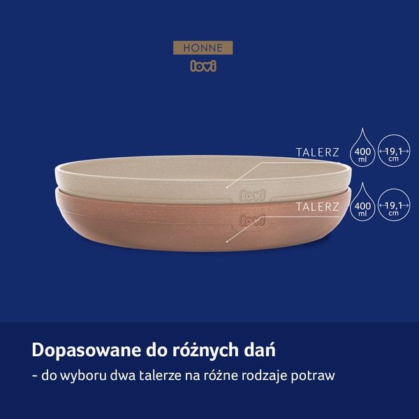 Produkty LOVI są lekkie, poręczne, łatwe do trzymania oraz posiadają bezpieczne, obłe kształty dzięki czemu mogą być używane zarówno przez rodziców, jak i dzieci. Do produkcji talerzyków zastosowaliśmy 20% mączki drzewnej pochodzącej z recyklingu, dzięki czemu w ich składzie znajduje się mniej plastiku, a co najważniejsze talerzyki te są wolne od melaminy oraz BPA.