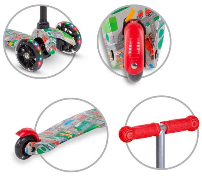 Kierownica hulajnogi pokryta została gumą, która zapewnia pewny chwyt. Okrągłe wykończenia zapobiegają ześlizgiwaniu się małych rączek, dzięki czemu szkrab nie straci panowania nad pojazdem.