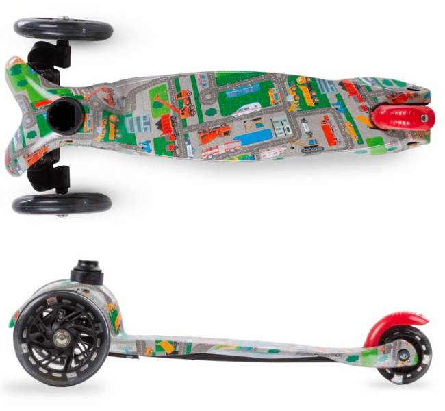 Wszystkie trzy koła hulajnogi dobrze ,,trzymają się'' nawierzchni, a dzięki zastosowaniu łożysk ABEC-7 kręcą się płynnie i bardzo cicho.