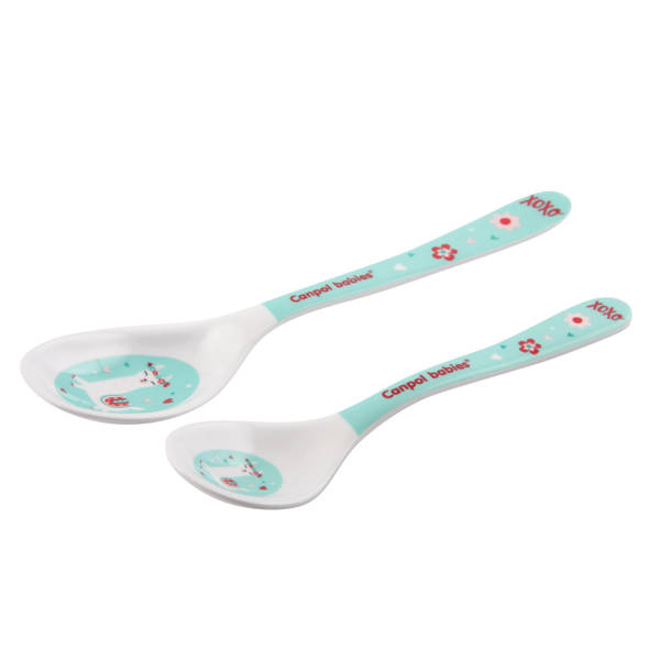 Łyżeczki wykonane został z melaminy, tworzywa odpornego na zarysowania. Posiadają zaokrąglony kształt, dzięki czemu nie podrażniają delikatnych dziąseł dziecka.