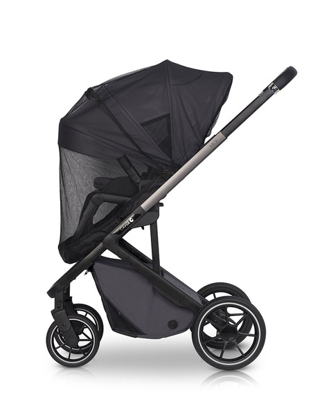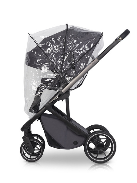 W zestawie z wózkiem otrzymacie okrycie na nóżki, folię przeciwdeszczową i moskitierę.