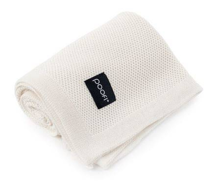 Kocyki Poofi mają małą, subtelną i elegancką metkę żakardową, która nadaje naszym kocykom stylu.