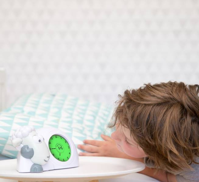 Sam otwiera oczy, a światło wyświetlacza zmienia kolor na zielony. Teraz Twój maluch może zacząć swój dzień, wstając z łóżka.
