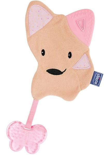 Maskotka z gryzakami Chicco jest wykonana z wyjątkowo miękkiej i chłonnej bawełny. Może służyć także do wycierania buzi dziecka, kiedy się ślini.
