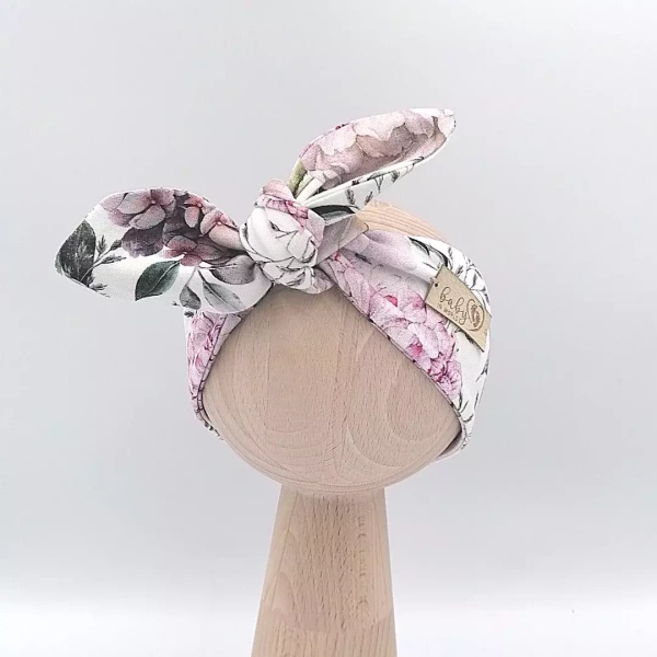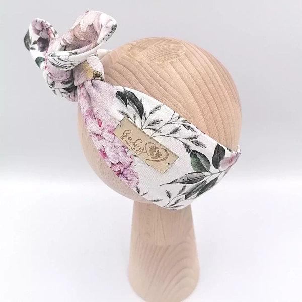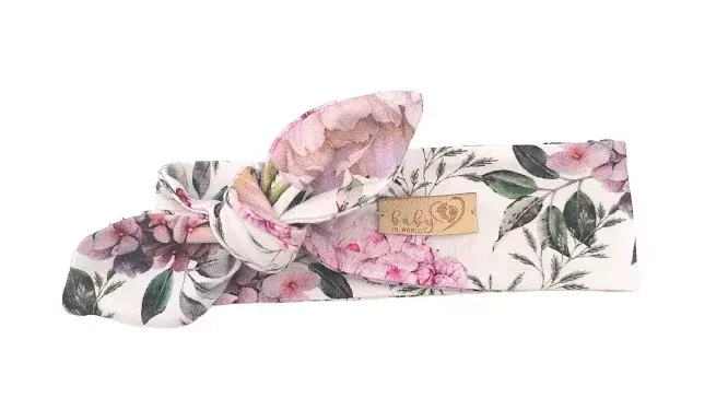 Opaskę można samodzielnie wiązać dostosowując ją do rozmiaru główki dziecka. Wykonana z mięciutkiej dzianiny, dobrze przylega do głowy dziecka, ale jej nie uciska, chroniąc przy tym uszka maluszka.
