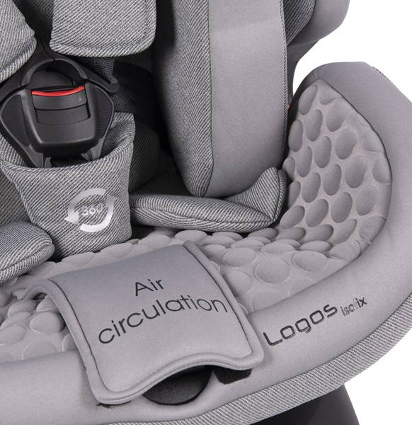 Logos I-SIZE jako jeden z niewielu fotelików samochodowych na rynku posiada wentylowaną skorupę. Zapewnia maksymalny komfort w upalne dni i ogranicza pocenie się dziecka do minimum.