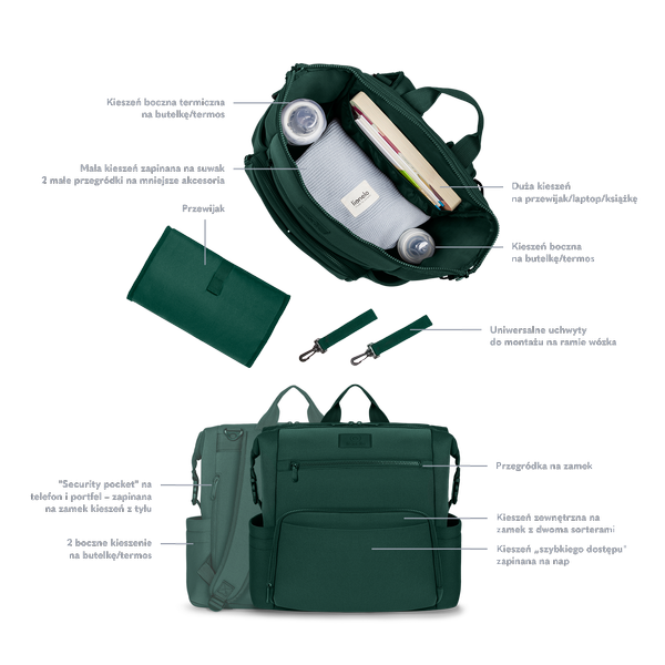 Jako rodzic na pewno skorzystasz z pasów do zawieszenia na wózku — dzięki nim plecak Lionelo Cube będzie w zasięgu Twoich dłoni. W zestawie otrzymasz mini przewijak, który warto mieć zawsze ze sobą – za jego pomocą przebierzesz dziecko w każdym miejscu. To doskonałe rozwiązanie także dla podróżujących — jego wymiary odpowiadają wytycznym bagażu podręcznego w samolocie. Wielkość plecaka możesz regulować za pomocą klamer, dzięki czemu swobodnie zmieścisz go pod siedzeniem. Praktyczna kieszeń na laptopa przechowa Twój sprzęt do pracy.