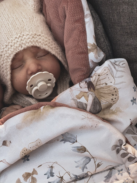 Jedna strona kocyka wykonana jest z najwyższej jakości bawełny, która nie spiera się, „nie mechaci” i nie traci swoich właściwości nawet po wielokrotnym praniu, druga strona to bajecznie mięciutki Velvet elegancko przepikowany w niepowtarzalny wzór. W środku wypełniony antyalergiczną, lekką, silikonową włókniną zapewniającą ciepło maluszkowi.
