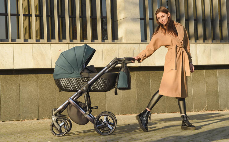 Wózek posiada regulowaną rączkę, a to oznacza, że można dopasować ją do wzrostu. Dzięki temu jest wygodny w prowadzeniu zarówno dla wyższych jak i niższych osób. Raczkę obszyliśmy ekoskórą, która sprawia, że nie ślizga Ci się w dłoniach i pozwala zawsze pewnie i wygodnie utrzymać ją nawet podczas długich spacerów.