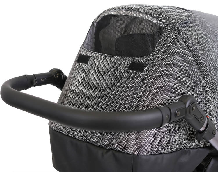 Wózek posiada okienka wentylacyjne w budce gondoli (panel zamykany za zamek błyskawiczny) i spacerówki.