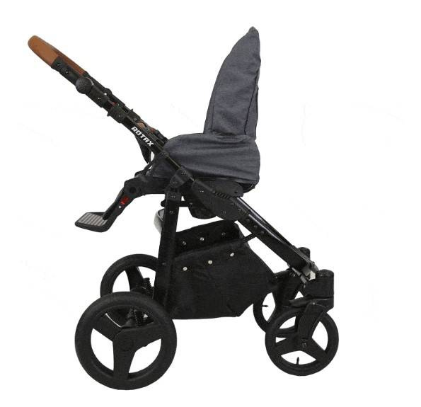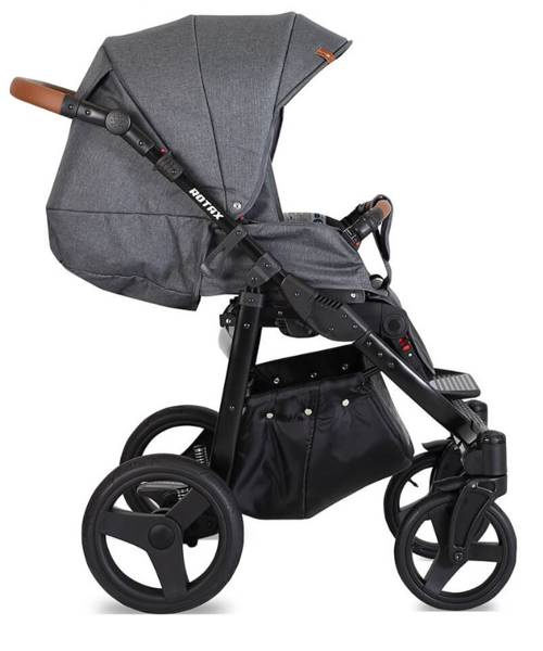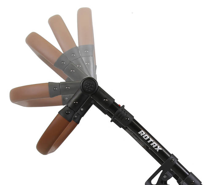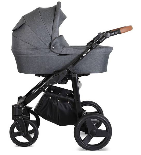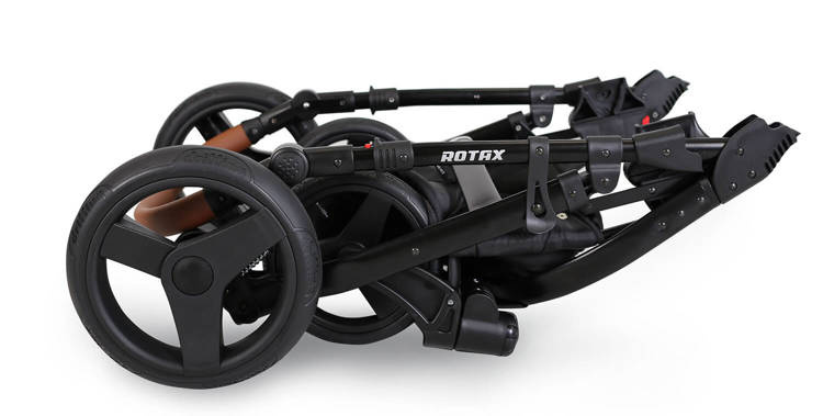 Stelaż wykonany został z lekkiego, ale wytrzymałego aluminium. Dzięki temu wózek dla dzieci Rotax jest zwrotny oraz łatwo się go prowadzi.