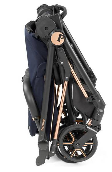Stelaż posiada scentralizowany system składania - niezależny od pozycji siedziska (przodem lub tyłem do kierunku jazdy). Po naciśnięciu przycisku wózek składa się samodzielnie i zajmuje niewiele miejsca. Siedzisko chowa się chroniąc tapicerkę przed ubrudzeniem.