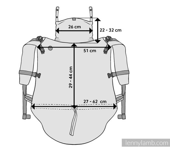 Pasy naramienne w nosidle klamrowym Onbuhimo LennyLamb są specjalnie pogrubione, żeby zapewnić rodzicowi komfort noszenia, a regulowany i odpinany kapturek można dopasować w zależności od potrzeb dziecka czy warunków atmosferycznych podczas spaceru.