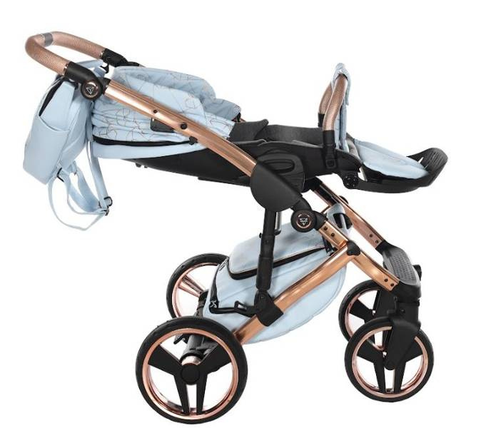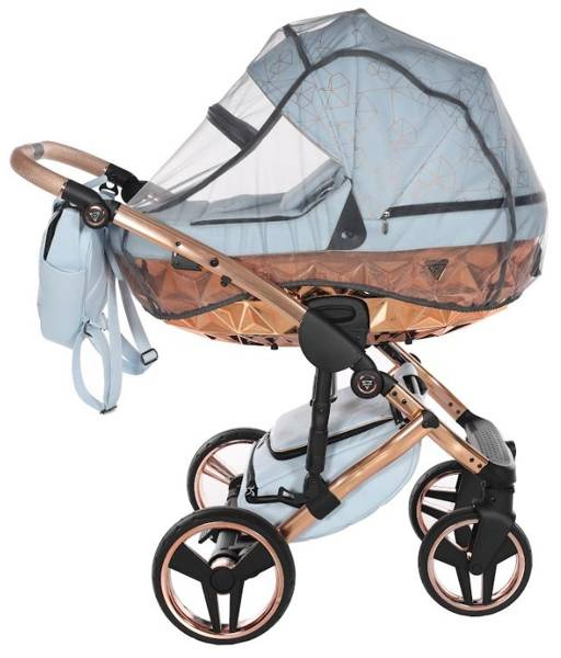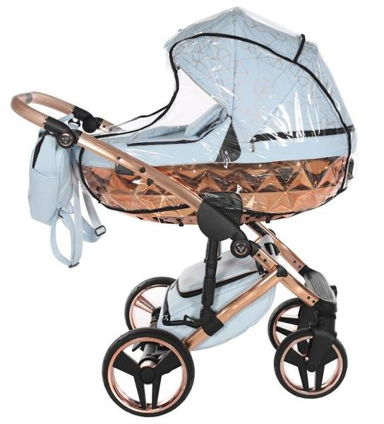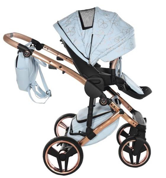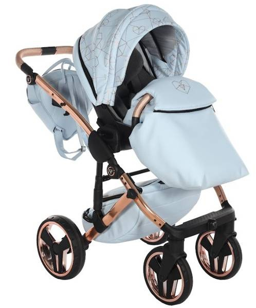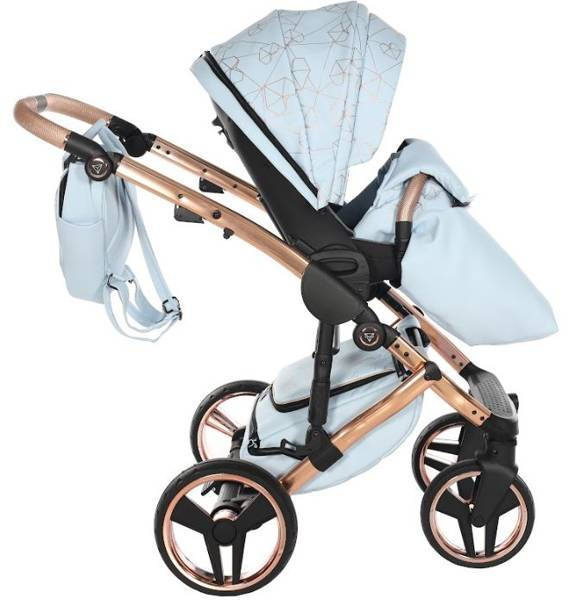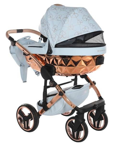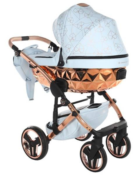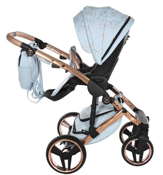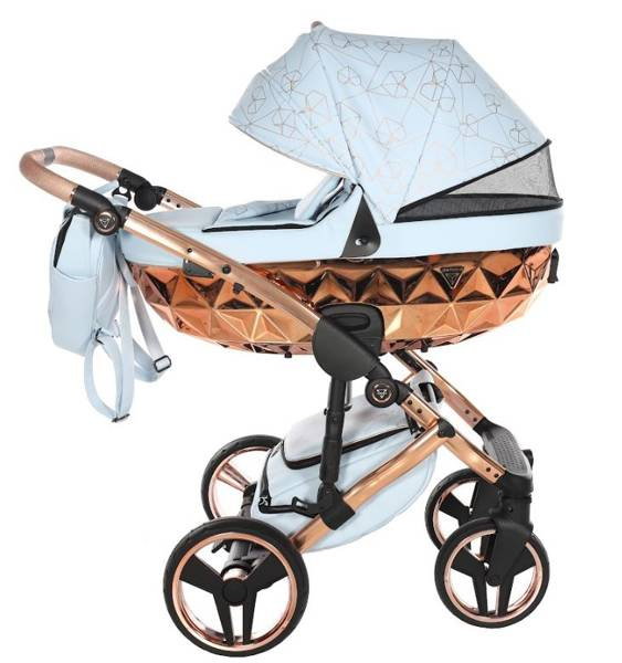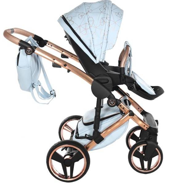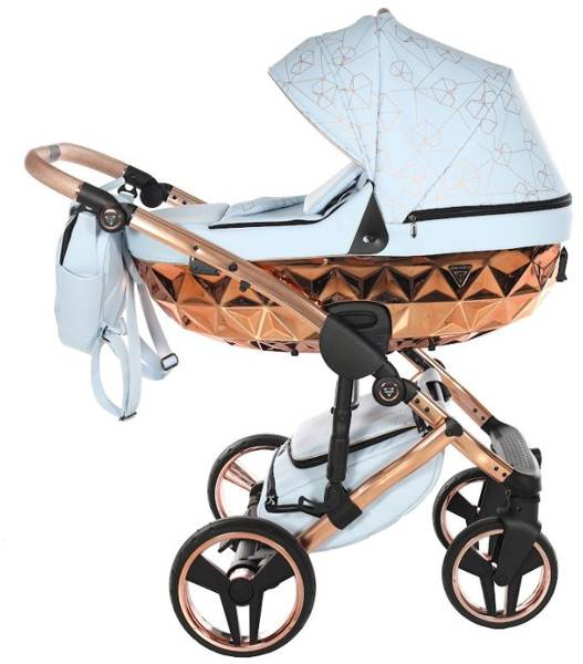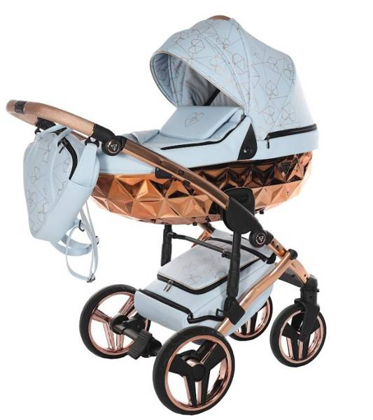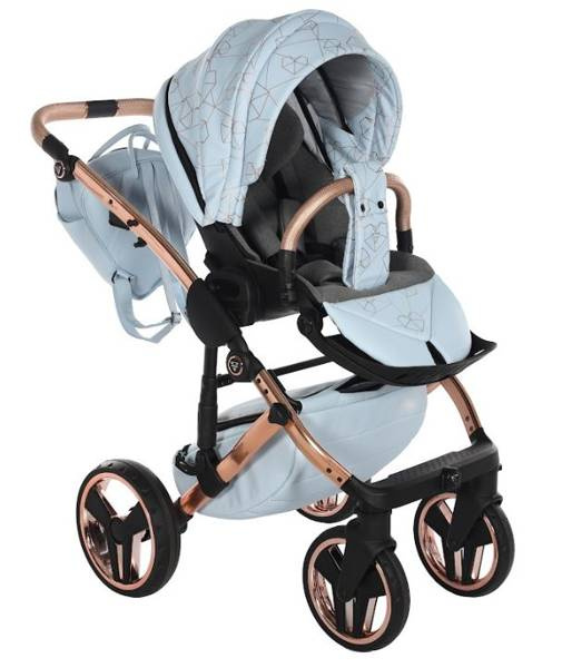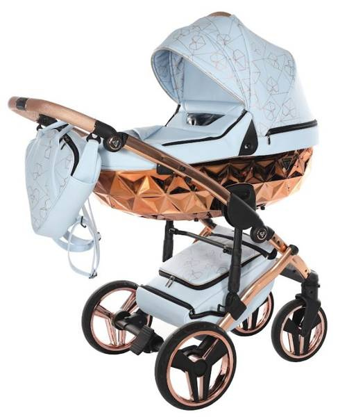 Model wyróżnia się pięknymi wzorami na tapicerce oraz dołączoną torbą w kształcie diamentu. Taka torba dodaje niezwykłej klasy i uroku, dzięki czemu codzienne spacery z maluchem będą wyjątkowe. Wózek wykonany z najwyższej jakości eko-skóry.