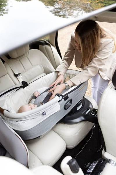 Joie Signature Calmi R129 Gondola z Możliwością Montażu W Samochodzie Carbon + Joie i-Base Encore Baza Obrotowa