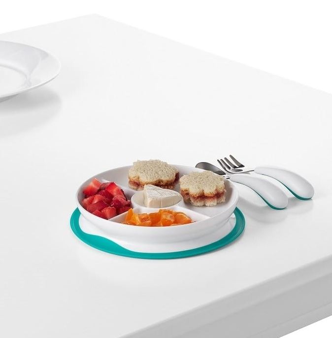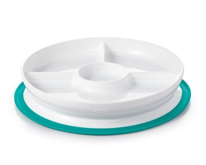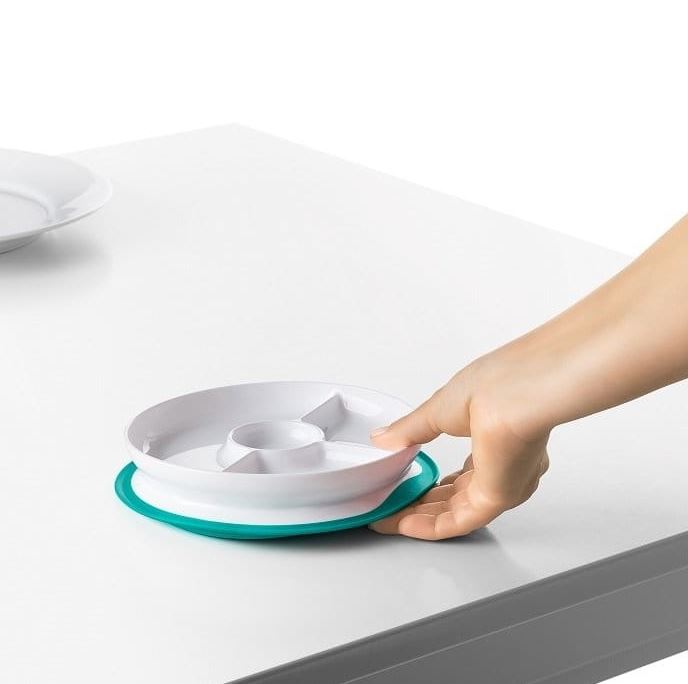 Prosty design talerzyka dzielonego z przyssawką OXO tot pozbawiony jest obrazków i innych ozdób, by wyeliminować dodatkowe bodźce, które rozpraszają dziecko przy jedzeniu. Maluch skupia się na samej czynności, czyli na tym, co podczas posiłku jest najważniejsze.