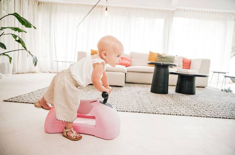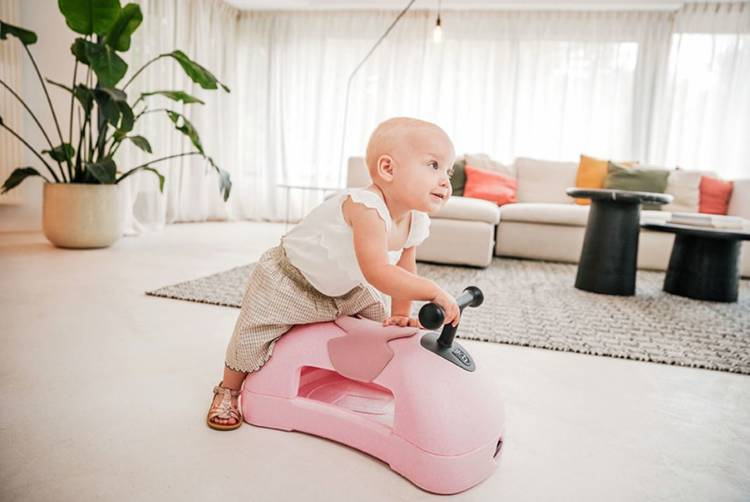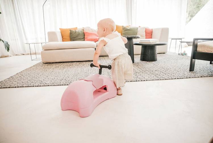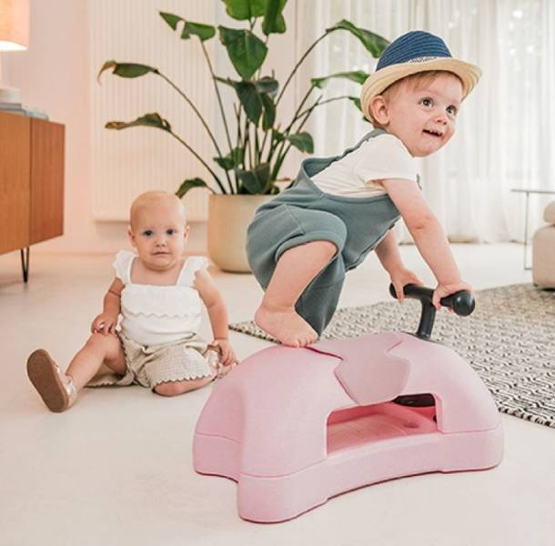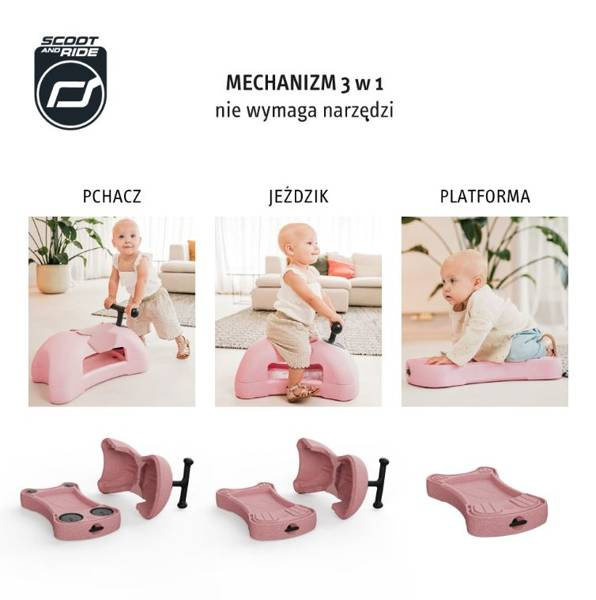 Kiedy Twój maluszek zacznie wstawać przy meblach i przesuwać stołki i krzesła, to znak, że przyszedł czas na pierwszą wersję Scootandride My First, czyli PCHACZ. Specjalne podkładki ślizgowe gwarantują bezpieczną zabawę dla malucha, który, może wspinać się na zabawkę i ją popychać.