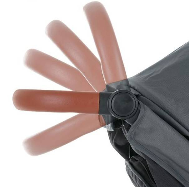 Regulowana rączka do prowadzenia wózka obszyta wysokiej jakości brązową eko-skórą – pozwala na dostosowanie wysokości rączki wózka do osoby, która go prowadzi.