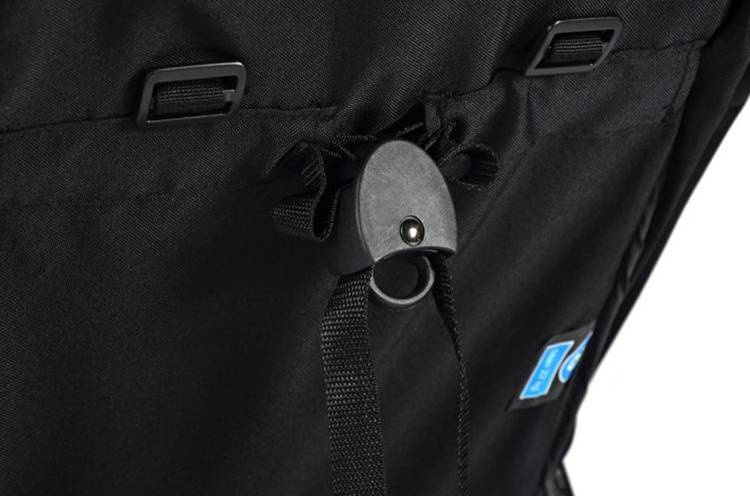 W zestawie czarne okrycie na nóżki na chłodniejsze dni lub deszczową pogodę.