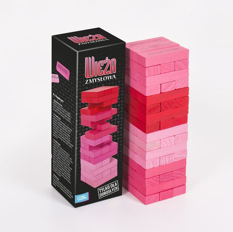 To nowa odsłona tradycyjnej Jengi w wydaniu 18+. Zasady gry są podobne, chodzi o to, żeby ostrożnie wyciągać klocki.