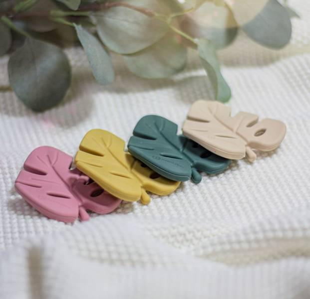 Miękki silikonowy gryzak w kształcie liścia został wykonany w całości z silikonu spożywczego bez BPA. Najwyższej jakości trwałe materiały gwarantują Twojemu dziecku bezpieczeństwo podczas zabawy i ząbkowania. Elastyczny silikon doskonale nadaje się do wrażliwych dziąseł. Pomaga uśmierzyć ból pojawiający się podczas procesu ząbkowania, gdyż w trakcie gryzienia gryzaka dziąsła są delikatnie masowane. Duże gładkie powierzchnie na liściu stanowią doskonałe miejsce do nałożenia chłodzącego żelu. Gryzaczek można też ochłodzić w lodówce i podawać dziecku do gryzienia zimny.