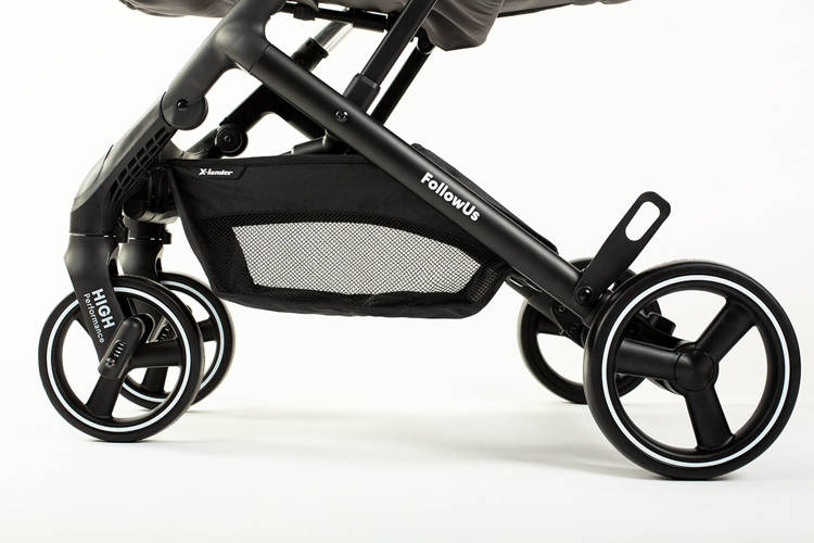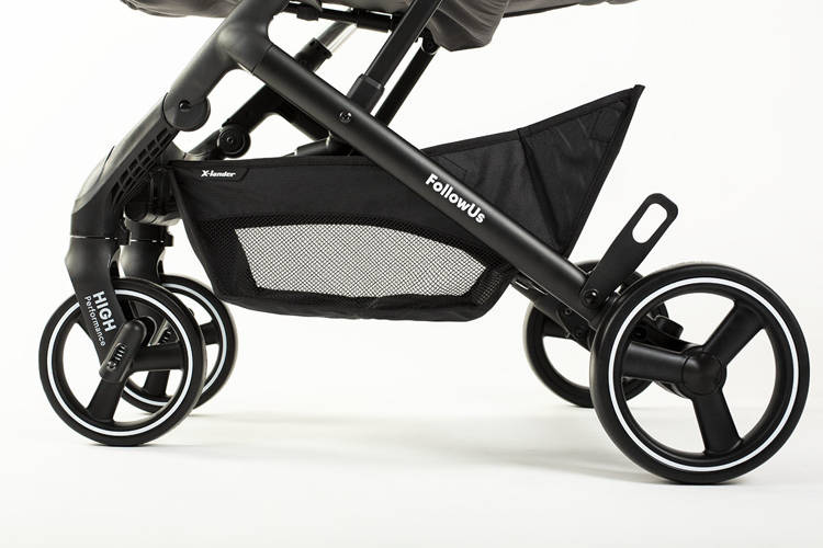 Jeśli lubisz podczas spaceru załatwić sklepowe sprawunki, spodoba Ci się także dodatkowo powiększany kosz pod wózkiem X-Lander X-Follow. Z pozoru niewielki, ale po rozłożeniu okaże się, że pomieści także zakupy.