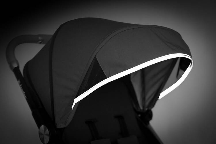 Na budce, koszu i kołach wózka X-Lander X-Follow umieszczono odblaski, dzięki którym będziecie lepiej widoczni po zmroku.