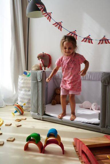 Oprócz opcji dostawki i łóżeczka wolnostojącego Chicco Next2Me Forever może także stać się łóżeczkiem podłogowym. Gdy twoja pociecha jest już nieco większa, możesz w łatwy sposób zdemontować nóżki łóżeczka. Od teraz szkrab może bawić się w fort, zamek czy bazę, a gdy się zmęczy - po prostu się położyć i zdrzemnąć.