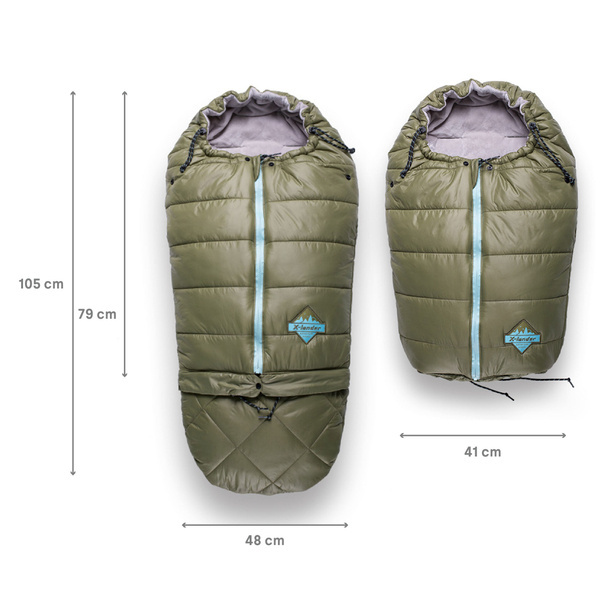 Śpiworek X-Lander X-Warm można użytkować w dwóch wersjach, będzie więc pasował do gondoli jak i spacerówki. Żeby zmniejszyć śpiworek należy odpiąć jego dolną część- wtedy sprawdzi się jako ciepłe okrycie niemowlaka w wózku głębokim, a kiedy maluszek wyrośnie z gondoli możesz przypiąć dół śpiworka i dopasowoać go do spacerówki.