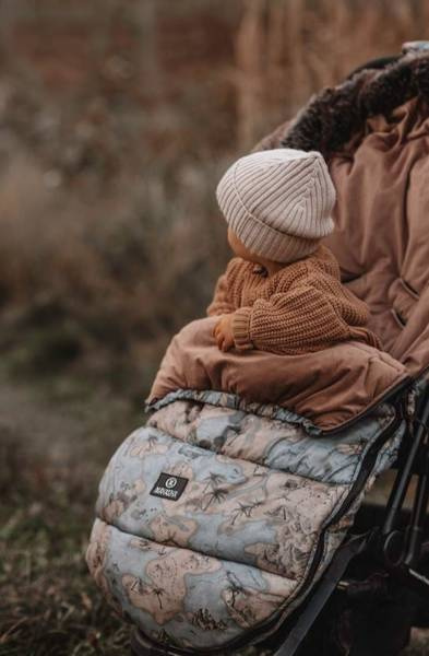 Górna część ma wszytą mocną gumkę, zarówno w części kaptura, jak i przykryciu maluszka. Po zaciągnięciu gumki możemy jeszcze lepiej ochronić Maluszka przed zimnem i wiatrem.