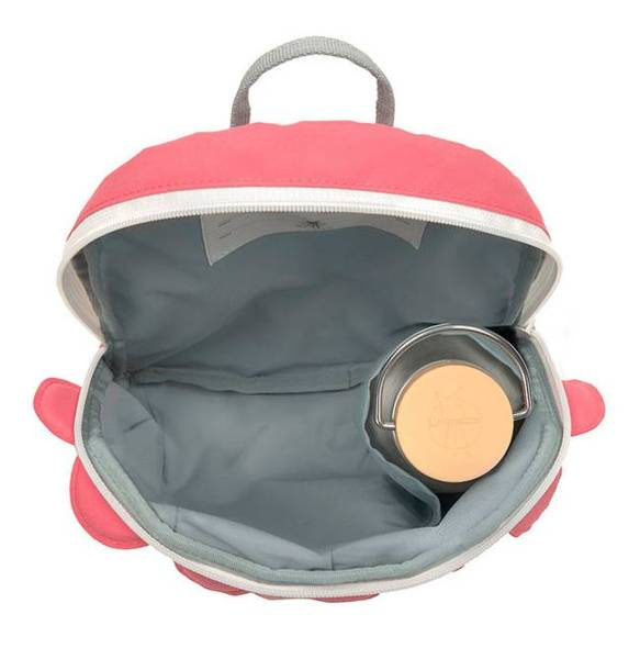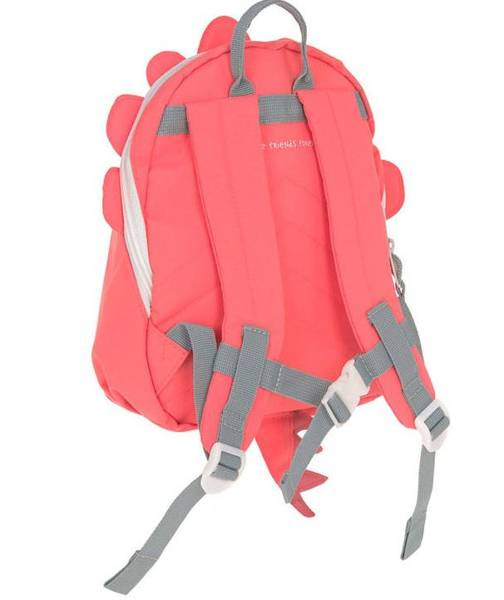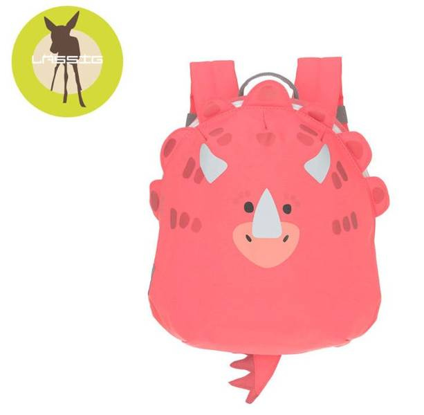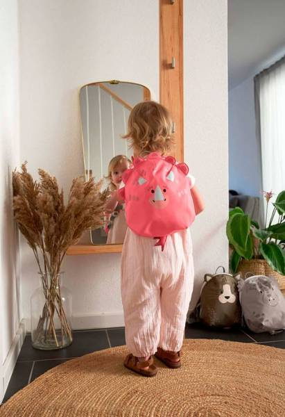 Wyjątkowo uroczy plecaczek 3D w kształcie rozczulającego dinozaura niemieckiej marki LASSIG. Funkcjonalny, lekki i wygodny, idealny dla maluchów już od 2. roku życia, do przedszkola i na krótkie wycieczki. Dinozaur ma piękny nasycony różowy kolor, półokrągłe wypustki wokół głowy, malowany jasny pyszczek, ciemniejsze plamki, białe rogi, róg na nosie, a w dolnej części plecaka – dłuższy ogonek z charakterystycznymi sporymi trójkątnymi wyrostkami. Dość przestronna komora główna zapinana jest na biały suwak, posiada wewnętrzną kieszeń na butelkę z napojem oraz etykietkę z wizytówką, na której można zapisać imię dziecka i numer kontaktowy rodzica.