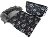 Śpiworek został uszyty z najwyższej jakości materiałów. Posiada otwory na pasy bezpieczeństwa, dzięki czemu dziecko w śpiworku nie przemieszcza się. Uniwersalne otwory pozwalają dopasować śpiworek do każdego wózka. Aby dostosować produkt należy przeciąć otwory w odpowiednich punktach.