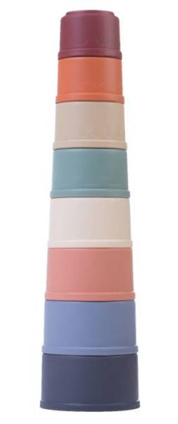 Małe pastelowe kubeczki do zabawy można ustawiać jeden na drugim, przewracając się, dają wiele radości każdemu dziecku. Budowanie wieży to świetna zabawa. Podczas niej dzieci badają, w jaki sposób kształty i rozmiary pasują do siebie i wykorzystują swoją wyobraźnię.