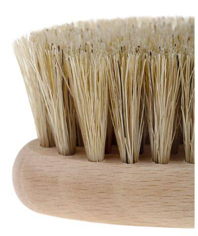 Szczotka wykonana jest bardzo precyzyjnie i solidnie. Każdy detal jest dopieszczony, począwszy od jakości drewna bukowego, poprzez specjalnie dobrane naturalne włókno kaktusowe z agawy (tampico), a skończywszy na detalach takich jak bawełniany pas i ozdobne przypinki. Dzięki elipsowatemu kształtowi i taśmie szczotka świetnie leży w dłoni podczas wykonywania masażu.
