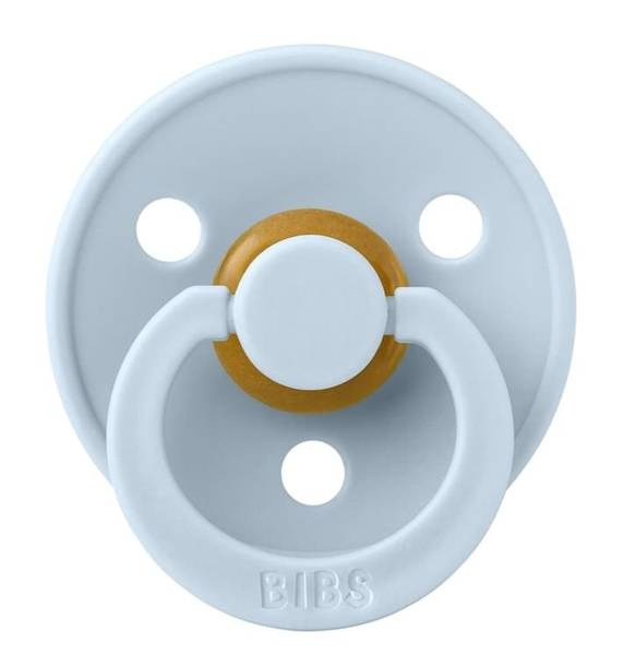 Smoczek BIBS Color to oryginalny smoczek BIBS, który istnieje na rynku od ponad 40 lat. Ma charakterystyczną okrągłą tarczę BIBS z trzema otworami wentylacyjnymi i okrągłym grawerowanym pierścieniem uchwytu BIBS.