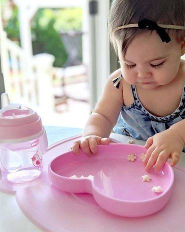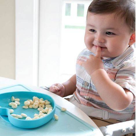 Silikonowy talerz od Chicco, idealny dla niemowląt od 9. miesiąca, został zaprojektowany tak, aby zachęcać do samodzielnego jedzenia.