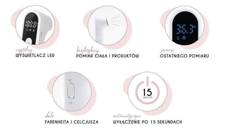 - bezdotykowy pomiar ciała i produktów
