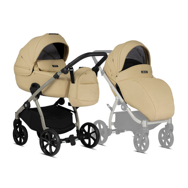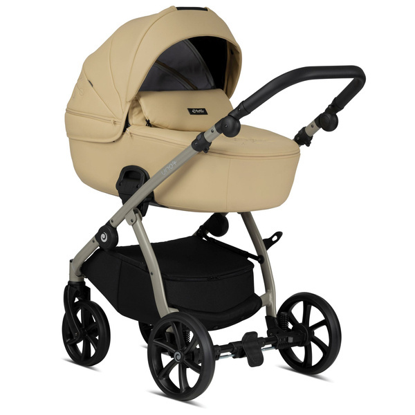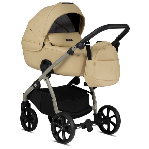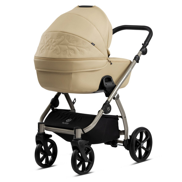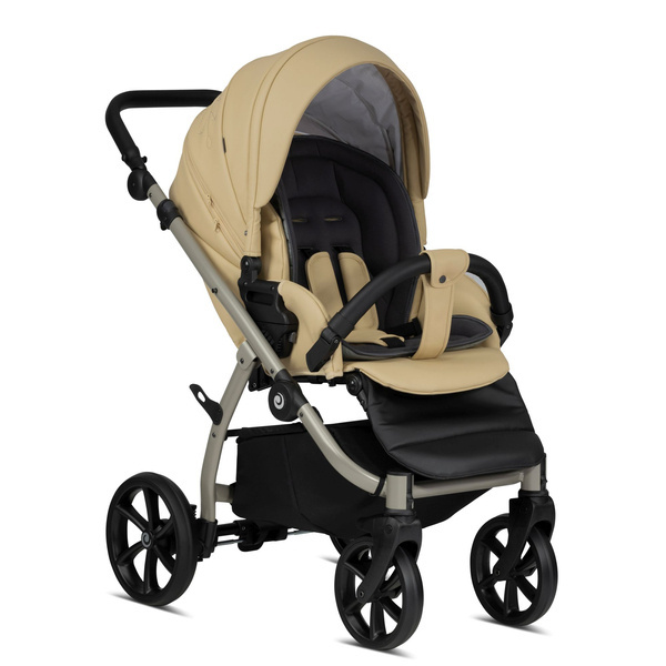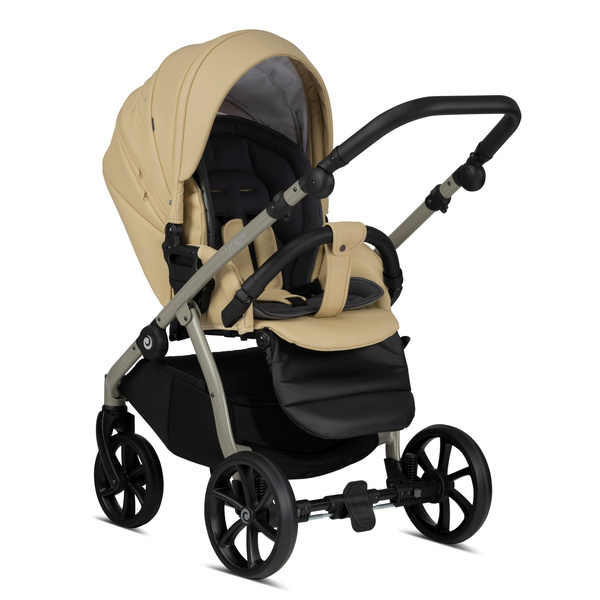 Dopasowująca się do różnych wysokości rączka sprawia, że pchanie wózka jest łatwiejsze i wygodniejsze. Miękka ekoskóra jest przyjemna w dotyku i nadaje wózkowi luksusowy charakter.