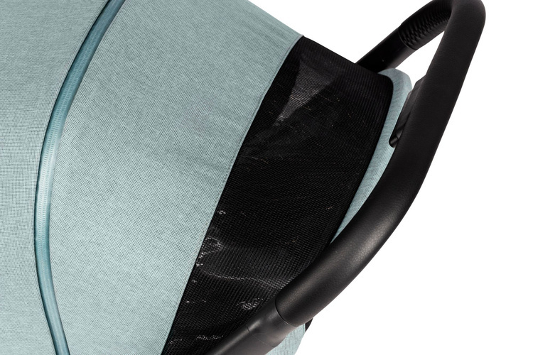 Podczas długich spacerów istnieje możliwość obserwowania maluszka bez zatrzymywania się. Przeźroczyste okienko peek-a-boo z ochroną przed deszczem i słońcem pozwala obserwować maluszka podczas wspólnych podróży.