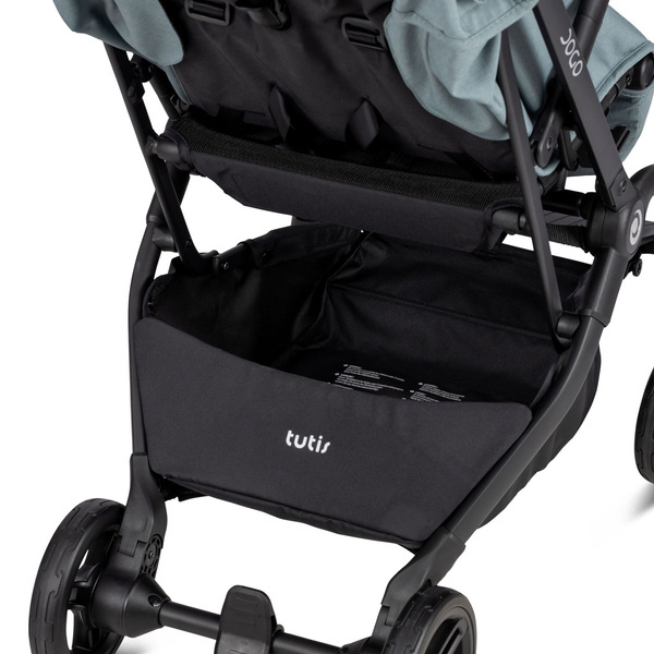 Z tyłu wózka TUTIS JOGO znajduje się system amortyzacji. Ułatwia spacery rodzicom, a małemu pasażerowi jest wygodniej podczas jazdy po nierównej powierzchni.