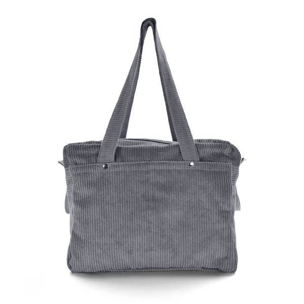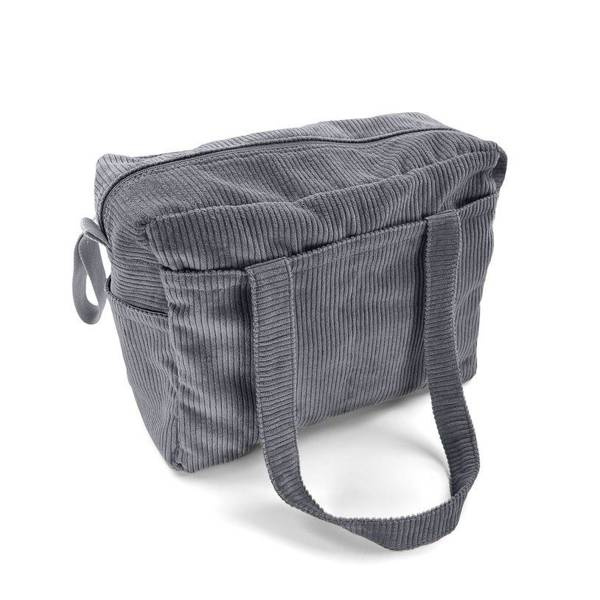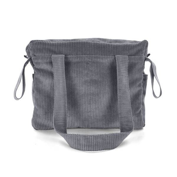 Torba do wózka wykonana została z wysokiej jakości tkaniny sztruks, którą charakteryzuje prążkowana struktura oraz wytrzymałość i odporność na zużycie. Materiał wykonany jest w 100% z bawełny, dlatego jest miękki i delikatny w dotyku. Wnętrze wykonane zostało z wodoodpornej podszewki.