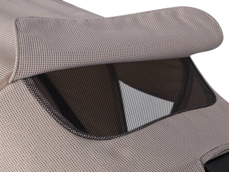 Gondola AXO SHINE posiada aż 3 panele wentylacyjne, dzięki czemu model ten będzie doskonałym wyborem w sezonie wiosenno letnim. Oprócz standardowej wentylacji w budce, gondola posiada duże, szczelnie zamykane panele wentylacyjne w przedniej i tylnej części gondoli. To rozwiązanie zapewnia optymalną wentylację wnętrza gondoli.