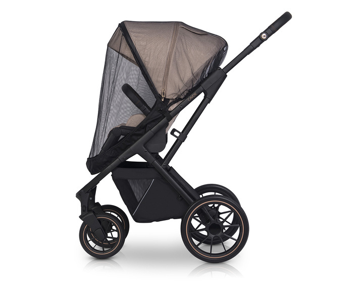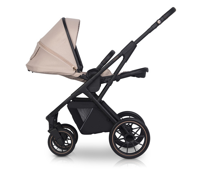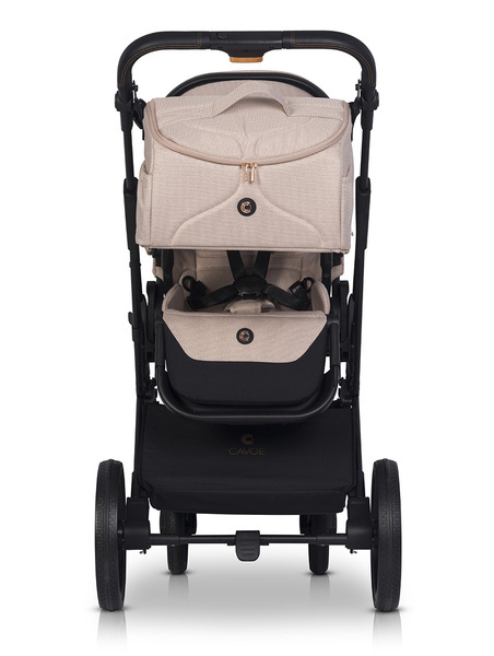 Wózek AXO SHINE podobnie jak popularna kolekcja STYLE posiada regulację wysokości prowadnicy. Funkcja ta umożliwia wygodne prowadzenie wózka zarówno wysokim, jak i niskim rodzicom. Przyciski regulacji zostały udekorowane eleganckimi metalowymi sygnetami CAVOE w kolorze ROSE GOLD, dzięki czemu ta niezwykle praktyczna funkcja stała się również dekoracją wózka.