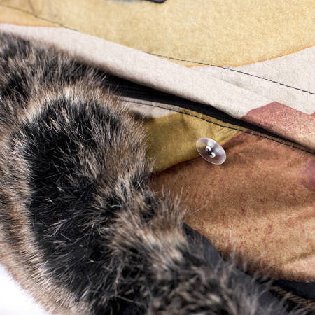 Na górze mufki znajduje się mała kieszonka na zamek, w której możesz schować potrzebne drobiazgi.