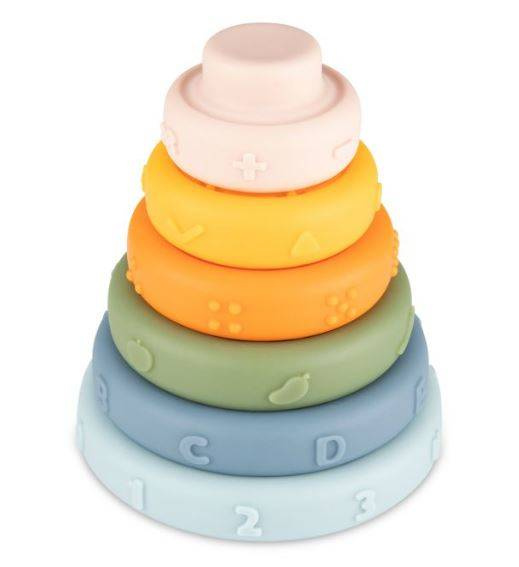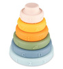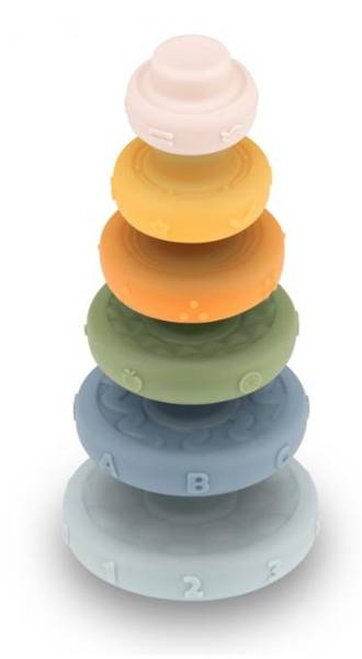 Sensoryczna zabawka układanka Canpol babies piramidka składa się z 6 elementów o różnych wielkościach i kolorach. Układanie kolorowych elementów jeden na drugim od największego do najmniejszego w kształt piramidy ćwiczy zręczność i cierpliwość dziecka. Sensoryczna układanka Canpol babies piramidka pomaga w nauce rozróżniania kolorów i wielkości, wspiera koordynację oko-ręka u dziecka. Każda warstwa piramidy ma wypustki o różnych kształtach – cyfry, literki, kropki itp., dzięki czemu Maluszek może dotykać je paluszkami poznając nowe faktury aktywizując zmysł dotyku lub „smakować” – poszczególne elementy świetnie sprawdzą się jako gryzaki. Sensoryczna układanka Canpol babies piramidka to klasyczna zabawka edukacyjna, dzięki której dziecko poprzez zabawę ćwiczy zdolności manualne, pamięć oraz wyobraźnię, a także logiczne i strategiczne myślenie – jak z porozrzucanych elementów ułożyć wieżę. Układanie sensorycznej piramidki to wspaniała wciągająca zabawa dla Maluszków. Sensoryczna układanka Canpol babies piramidka jest rekomendowana dla dzieci od 6 miesiąca życia.